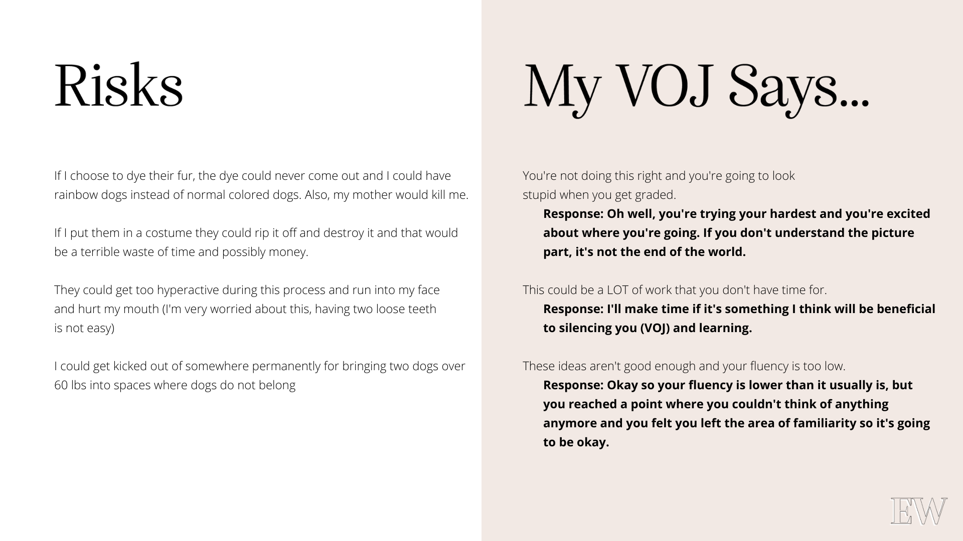 VOJ – Voice of Judgment. This is the voice in your head telling you NOT to do something, to be scared.